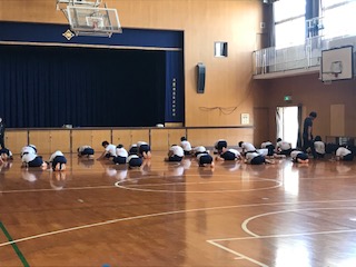 本日4限目、保健体育の研究授業を行いました。体つくり運動のまとめみんなで、楽しそうに、協力して取り組んでいました。