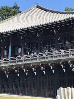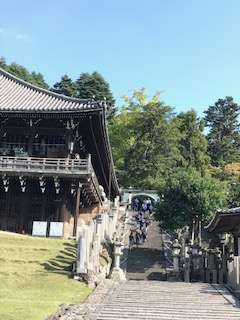 フリーチェックポイント二月堂、目の前に東大寺の屋根、その奥には生駒山が見え、その向こうは大阪です。