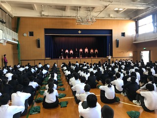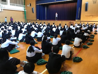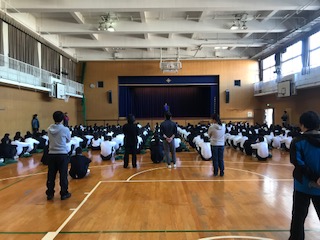 本日、全校集会がありました。後期専門委員長が専門委員会報告を行いました。緊張しながらもしっかりと発表していました。