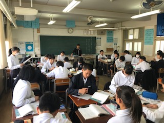 本日3限目、2年2組で国語の研究授業がありました。グループで話し合う活動をしたあと、代表生徒がみんなの意見をまとめてしっかりと発表していました。