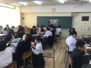 本日2限目、1年1組で、美術の研究授業を行いました。班活動で、作品について話し合う活動を行いました。
