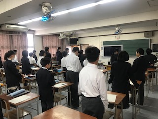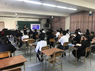 本日3限目、1年1組の音楽で研究授業を行いました。音楽を聴いて自分の意見を考える活動を行いました。