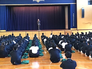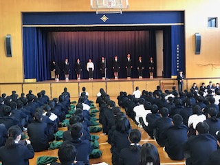 本日全校集会がありました。校長先生のお話しのあと、専門委員会報告がありました。専門委員長は、それぞれの専門委員会で話し合ったことを全校生徒にしっかりと伝えていました。