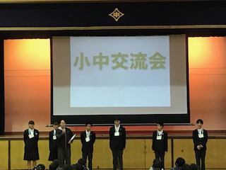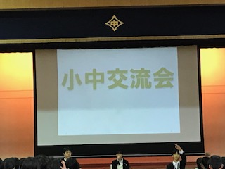 本日小中交流会がありました。丸山小学校・金塚小学校の6年生が体育館に集まりました。本校生徒会が中心となり、学校生活についての説明やクイズなど小学校同士の交流を行いました。その後、先生からも学校生活についての説明を行いました。短い時間でしたが、楽しんでくれていたと思います。