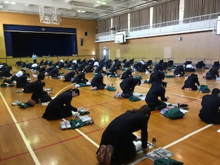 本日、2年生が席書会を行いました。自分で選んだ文字を3枚書きました。授業の成果が出せるように、真剣に取り組んでいました。