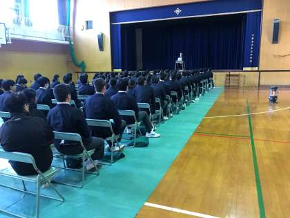 本日、特別支援教育講演会に濱崎さんに来ていただき、お話ししていただきました。視覚障がいについてのことや、3年生の進路についてのことなどをお話していただきました。3年生にとってたいへん良い機会になりました。