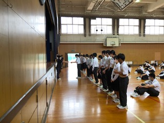 7/9(木)の学年集会で、先日行われた活動班アピール大会の表彰を行いました。