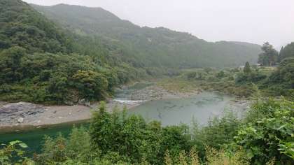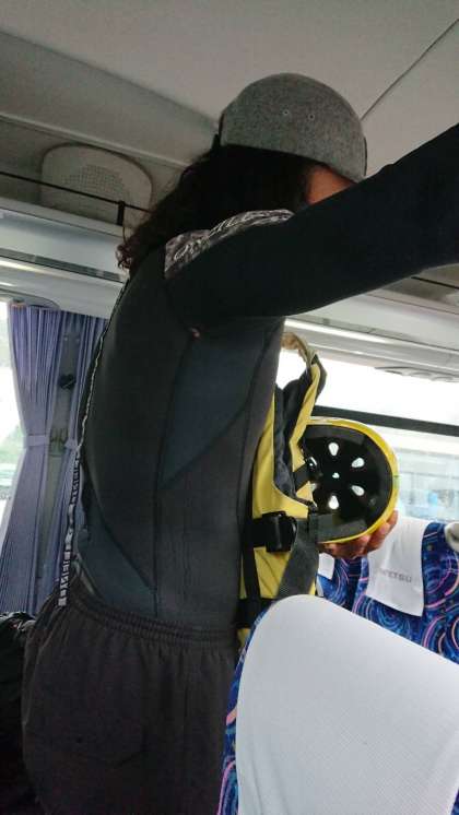 ラフティングベースに到着しました。車内で説明を聞いてこれから着替えに行きます。