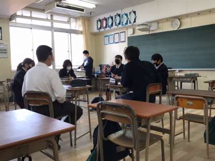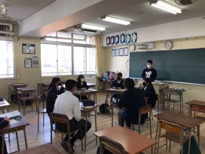 今日のテーマは…、学年で盛りあがってできる企画を立案し、先生にプレゼンして企画を通すことができるかということです。委員長同士のの話し合いが盛りあがりました。