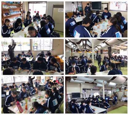 実行委員の「いただきまーす!」でお昼ご飯の開始です。 残念ながら、黙食です…。(悲)
