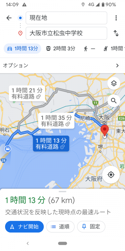渋滞がなければ、15時30分過ぎに学校に到着できそうです。