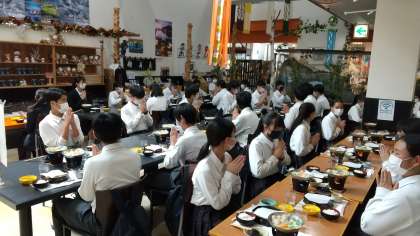 予定より約50分遅れましたが、流響の里に到着しました。ここで昼食です。
