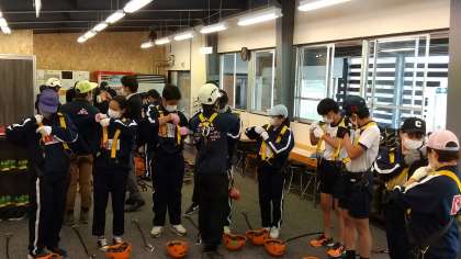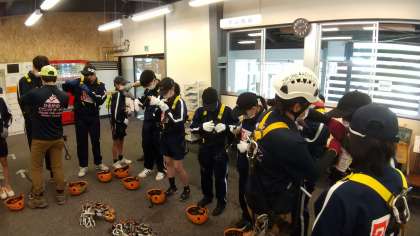 昼食後、選択別体験ごとにバスに乗車、それぞれ選択した体験先に向かいました。写真は、ジップライン班のようすです。