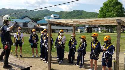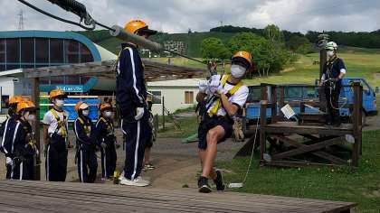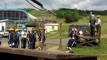 ふもとで練習してから上に上がるグループです。ここで器具の扱い方やジップラインに慣れます。