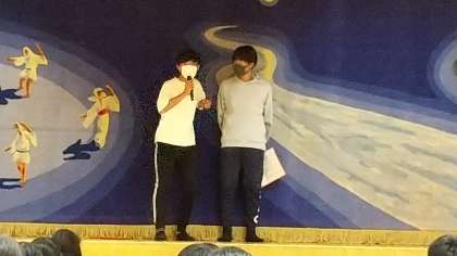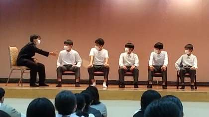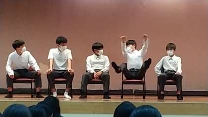 続いて6人組によるコント。上司と部下たちのやりとりですが、部下たちは「アメリカの組織が開発した嘘をつくと体が反応する薬」を服用したため、上司に対する本音と建前が明らかになる、というものです。本当にあったらおそろしい!ですね。