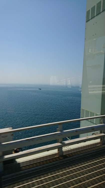 明石海峡大橋を通過中です。もうすぐサービスエリアです!