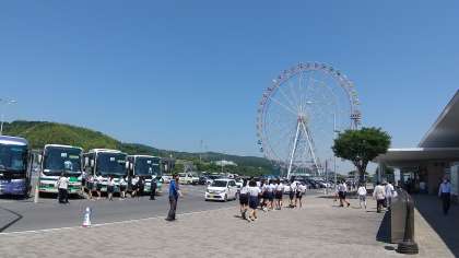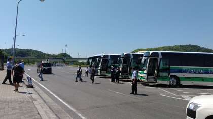 突然海が開け、歓声があがりました。淡路SAでトイレ休憩をしました。