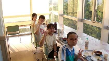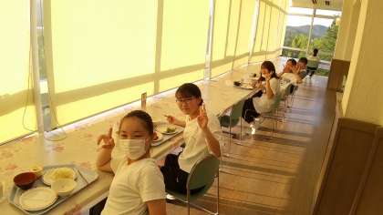 油淋鶏、ビーフン炒め、淡路の玉ねぎステーキ、フライドポテト、ブロッコリーのオーロラソース和え、ビーンズサラダ、生野菜、プリン、かきたまスープ、麻婆丼が用意されていました。昼の活動でお腹が空いたのでお代わりもしました。