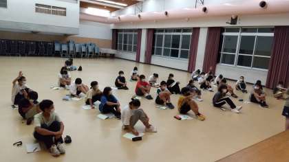 レクの終わりに「1日目を終えて」実行委員から話がありました。その後、同じ場所で実行委員会を行いました。この後は就寝となります。