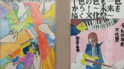 3枚目の写真は、次の部屋に向かうときに2階の廊下に掲示されていたポスターです。スローガン通りのカラフルな作品ですね。
