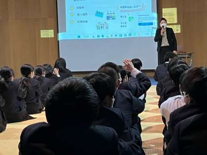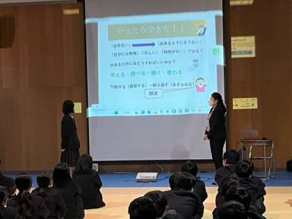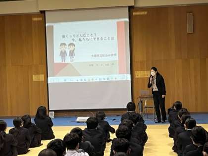 わかものハローワークから講師の方をお招きし、「働くこと」をテーマにお話ししていただきました。中学生の間に身につけておきたいことなどを一緒に確認することができました。