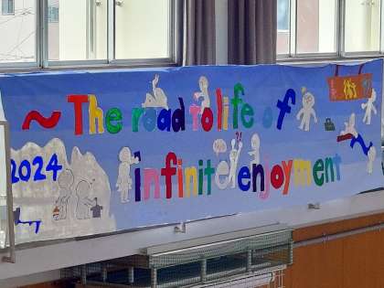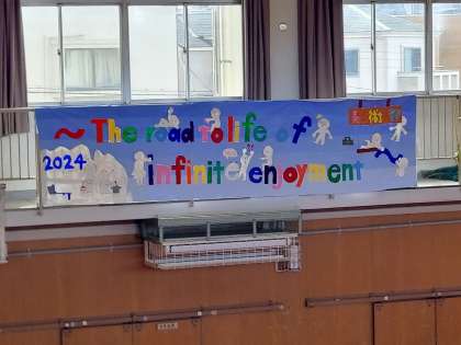この期間、美術部のみなさんが作成した横断幕が完成し、体育館内に掲示されました。