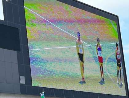 共通男子円盤投げの決勝進出選手の紹介が行われています。