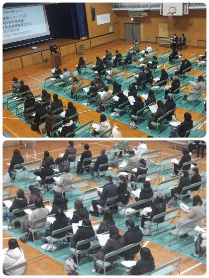 校区小学校などに在籍児童の保護者の方々にご参加いただき、新入生保護者説明会を行いました。