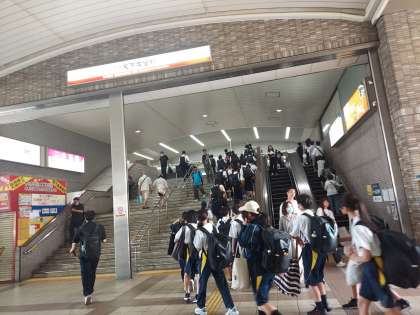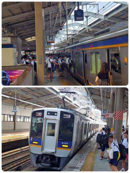 2年生は一泊移住で、淡輪にある府立青少年海洋センターに向かいます。