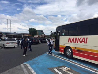 2年生の一泊移住を、5月16日(月)〜17日(火)の2日間、堺市立日高少年自然の家で実施します。予定通り学校を出発し、紀ノ川サービスエリアに到着しました。トイレ済ませて出発します。