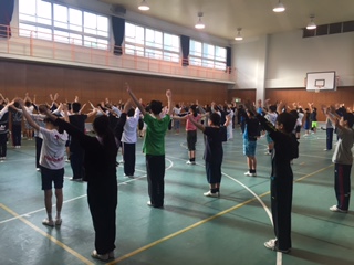 朝の集い、ラジオ体操です。今日も1日頑張ります。
