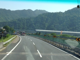 朝の退館の挨拶を終え、美しい富士山をバックに、クラスごとの記念写真を撮影しました。バスに乗り込みしばらくすると、前方にリニアモーターカーの実験線路が見えてきました.