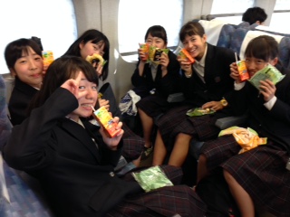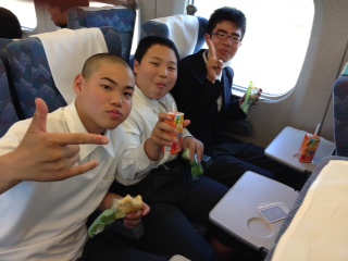 名古屋駅に着き、軽食のメロンパンとジュースが配られました。後30分程で、新大阪に着きます。