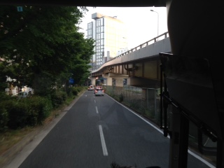 予定通り新大阪に着き、バスに乗り換え出発しました。道が少し混んでいるので、到着予定の6時50分より遅くなります。