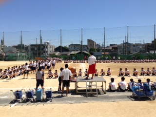 6月3日5.6時限目に、体育大会全体練習を行いました。これまで、各学年練習で取り組んできた内容を、全学年で練習しました。ラジオ体操などかなり上達してきました。