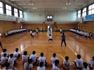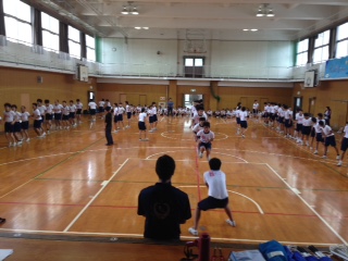 6月7日5.6時限目に、体育大会3年生学年練習を行いました。雨天のため、体育館で行いました。みんなでジャンプの大縄跳びの練習をしました。みんなが声を合わせて上手に跳んでいるのを見て、さすが3年と感心しました。100回越えを目指して頑張ってください。その後、各種目に分かれて先生から説明を受けました。