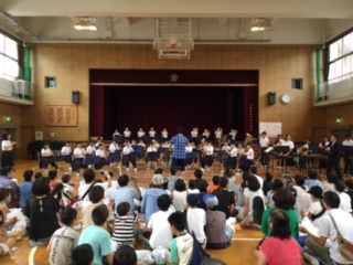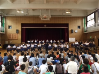 9月19日(祝)、丸山小学校で子ども夏祭りが開催されました。昨日開催の予定が、雨天のため19日の開催となりました。15時から本校の吹奏楽部が、丸山小学校児童や教職員、地域や保護者の皆さんに演奏を聴いていいただきました。一生懸命演奏をし、多くの方々から大きな拍手をいただきました。