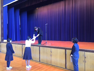 展示発表の部(書道)で3年坂本 日向さん、1年川田 愛子さんの2名が表彰を受けました。