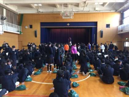 3年間を通し自分の進路を自分自身で切り開く力を身につけるために、服装をただし気持ちを引き締めて学校生活を送る事を目的に実施しています。2学期最後の「がんばろうfor me」では、生徒全員が服装や頭髪、持ち物などが正しくできていました。