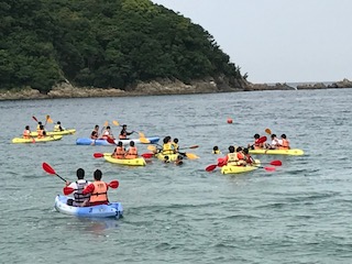 カヌーとカヤックに分かれて乗っています。