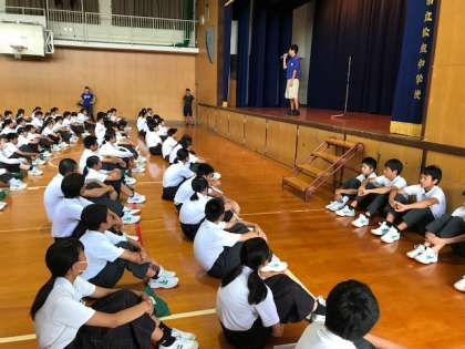 全校集会で がんばろう for me の取り組みがありました。風紀委員が中心となり3週間取り組みました。