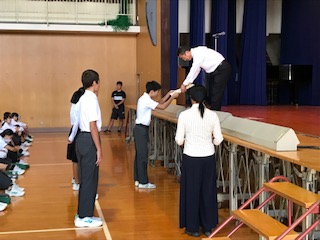 陸上部、大阪市秋季総合体育大会、男子3年走り幅跳び、第2位上前くん、2年200m、第3位芦高くん、1年走り高跳び、第1位北田くん、女子3年100m、第2位野口陽香里さん、2年100m、第2位東野さん、共通400mリレー、第2位野口陽香里さん、野口明香里さん、東野さん、北野さん。