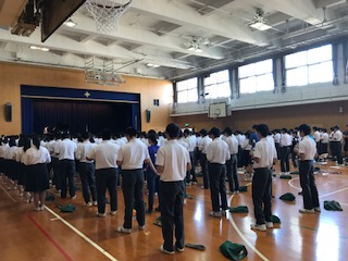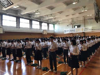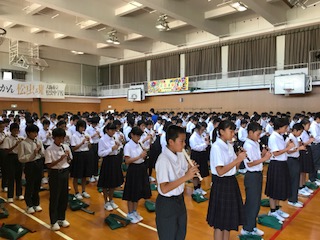 全校集会の後、文化祭へ向けて、リコーダーの全体練習を行いました。