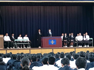 本日、後期生徒会役員選挙がありました。それぞれの候補者や応援演説者が自分の思いを述べ、みんな真剣に聞いていました。大変良い選挙になりました。