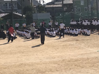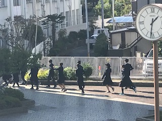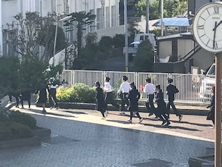 本日、避難訓練がありました。生徒は、急いで運動場に避難していました。