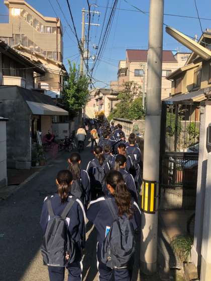 2年生が天下茶屋駅に移動しています。