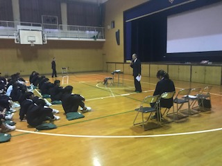 本日5限目、2年生は、薬物乱用防止教室がありました。講師として、阿倍野区保護司会から中山 行男 様、川下 昭彦 様、栄枝 恭子 様にきていただきました。