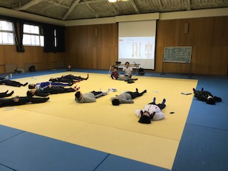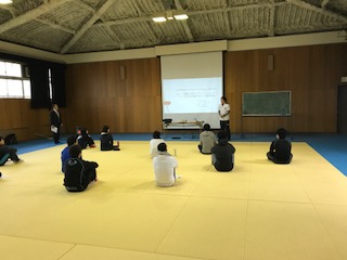 本日格技室において、子どもの体力向上実技研修会(コンディショニング)が行われました。幼、小、中、高が対象で行われ、たくさんの先生方が参加されていました。
