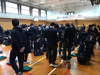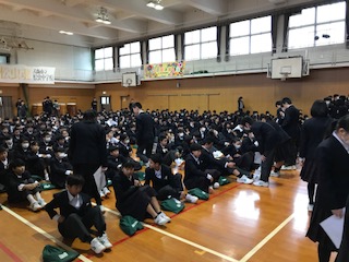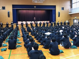 本日、全校集会でがんばろう for meの取り組みがありました。風紀委員が中心に約1カ月取り組んだ結果、違反者が0になりました。
