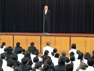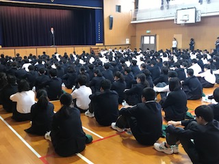 本日、5月7日は、いじめについて考える日です。全校集会で、校長先生から、いじめについて考える講話がありました。生徒たちも、真剣に聞いていました。また、本日第1回目のいじめアンケートを行います。